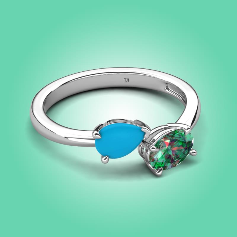 1.51 ctw Turquoise Pear Shape 7x5 mm & Lab Created Alexandrite Oval Shape 7x5 mm with Prong setting Two Stone Duo Women Engagement Ring in 18K White Gold More Details ...