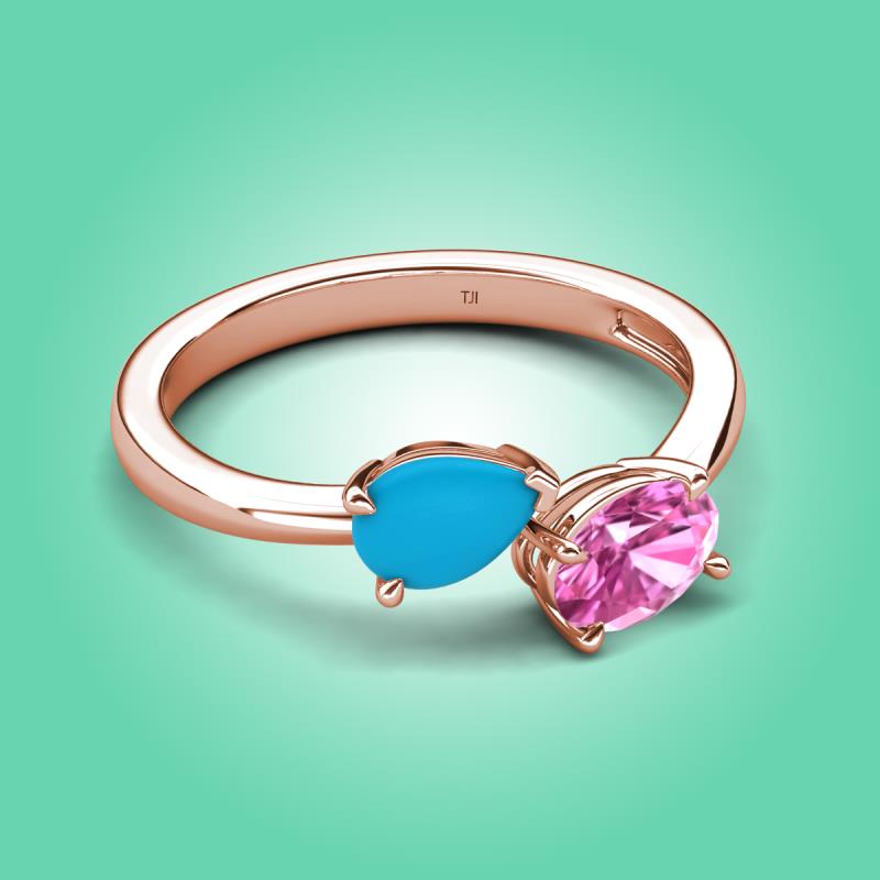 1.35 ctw Turquoise Pear Shape 7x5 mm & Pink Sapphire Oval Shape 7x5 mm with Prong setting Two Stone Duo Women Engagement Ring in 18K Rose Gold More Details ...