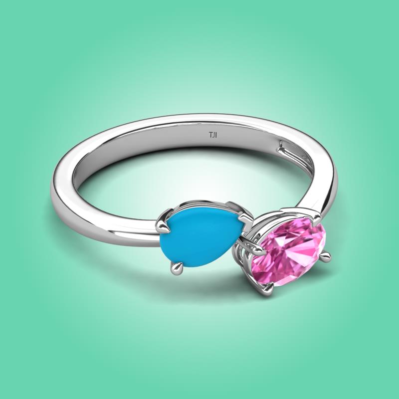 1.35 ctw Turquoise Pear Shape 7x5 mm & Pink Sapphire Oval Shape 7x5 mm with Prong setting Two Stone Duo Women Engagement Ring in 18K White Gold More Details ...