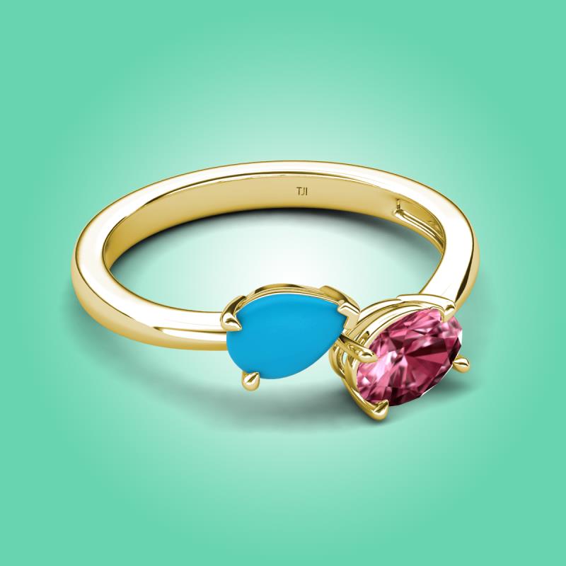1.20 ctw Turquoise Pear Shape 7x5 mm & Pink Tourmaline Oval Shape 7x5 mm with Prong setting Two Stone Duo Women Engagement Ring in 18K Yellow Gold More Details ...