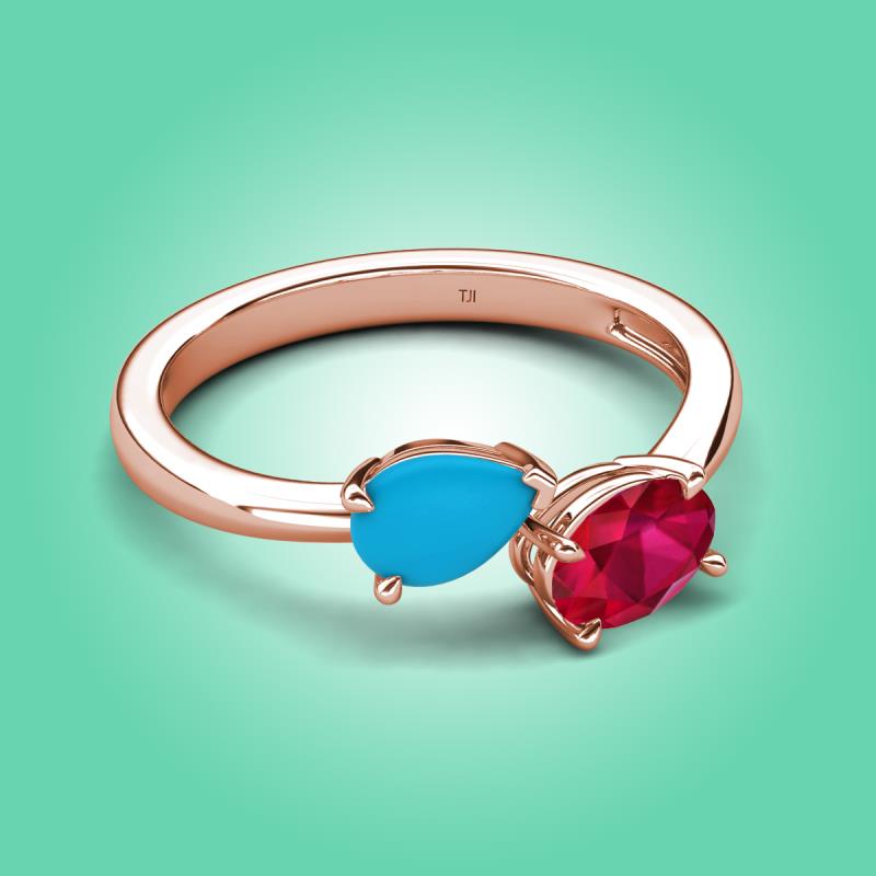 1.25 ctw Turquoise Pear Shape 7x5 mm & Ruby Oval Shape 7x5 mm with Prong setting Two Stone Duo Women Engagement Ring in 10K Rose Gold More Details ...