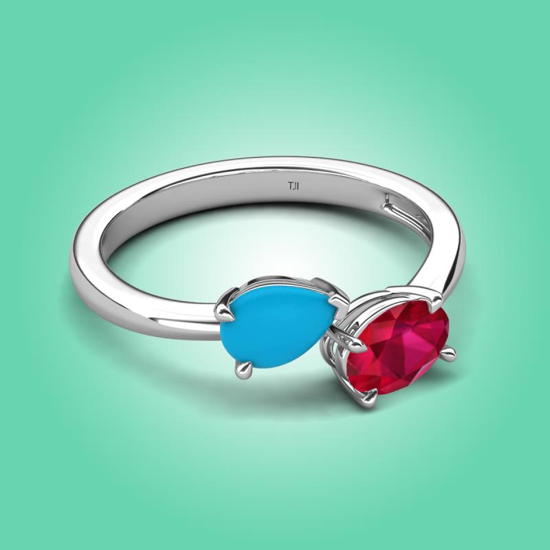 1.25 ctw Turquoise Pear Shape 7x5 mm & Ruby Oval Shape 7x5 mm with Prong setting Two Stone Duo Women Engagement Ring in 10K White Gold More Details ...