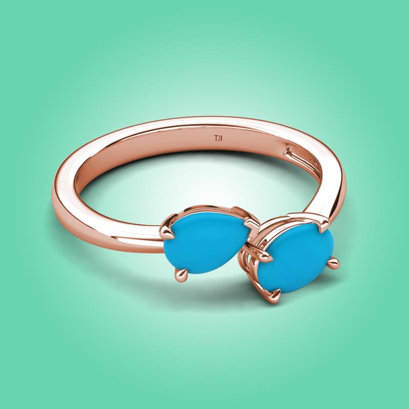 1.05 ctw Turquoise Pear Shape 7x5 mm & Turquoise Oval Shape 7x5 mm with Prong setting Two Stone Duo Women Engagement Ring in 10K Rose Gold More Details ...