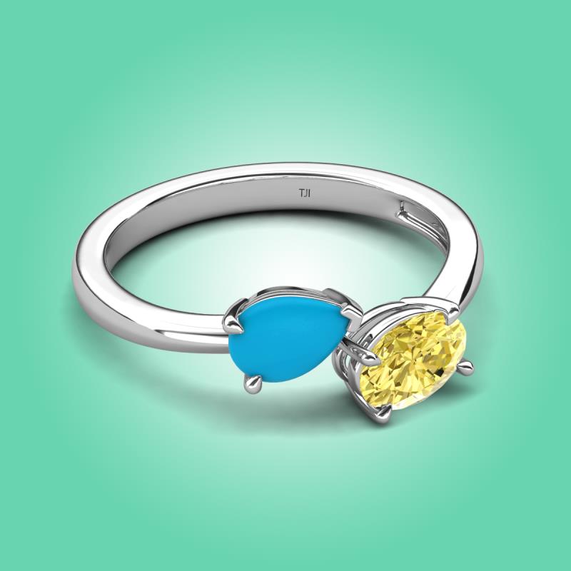 1.35 ctw Turquoise Pear Shape 7x5 mm & Yellow Sapphire Oval Shape 7x5 mm with Prong setting Two Stone Duo Women Engagement Ring in 18K White Gold More Details ...