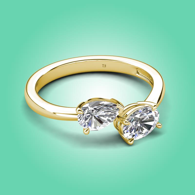 1.70 ctw White Sapphire Pear Shape 7x5 mm & GIA Certified Natural Diamond Oval Shape 7x5 mm with Prong setting Two Stone Duo Women Engagement Ring in 18K Yellow Gold More Details ...