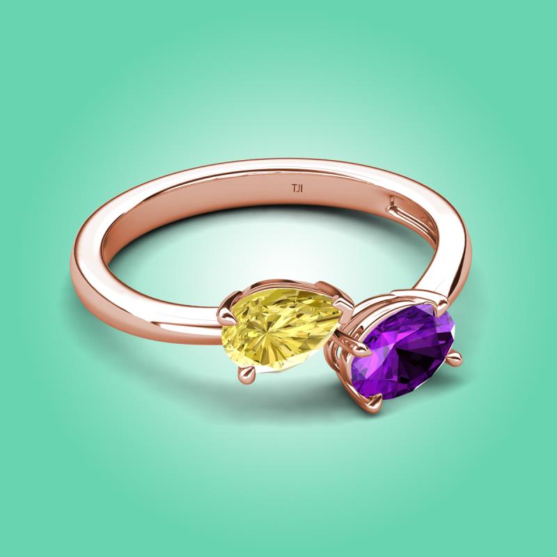 1.62 ctw Yellow Sapphire Pear Shape 7x5 mm & Amethyst Oval Shape 7x5 mm with Prong setting Two Stone Duo Women Engagement Ring in 18K Rose Gold More Details ...