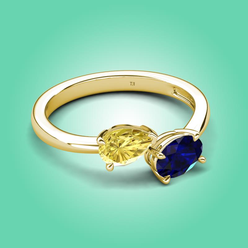 1.80 ctw Yellow Sapphire Pear Shape 7x5 mm & Blue Sapphire Oval Shape 7x5 mm with Prong setting Two Stone Duo Women Engagement Ring in 14K Yellow Gold More Details ...