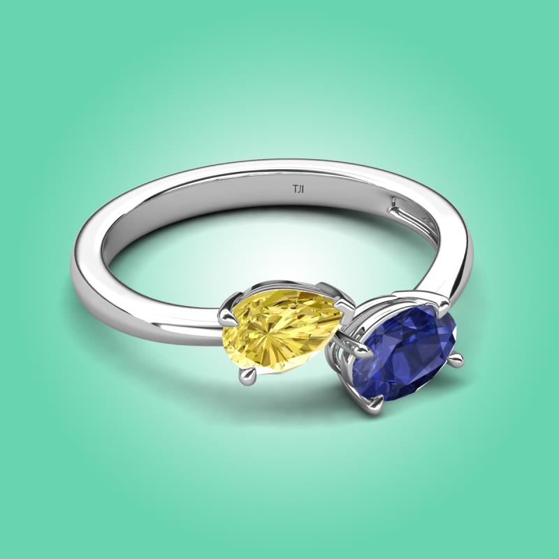 1.57 ctw Yellow Sapphire Pear Shape 7x5 mm & Iolite Oval Shape 7x5 mm with Prong setting Two Stone Duo Women Engagement Ring in 14K White Gold More Details ...