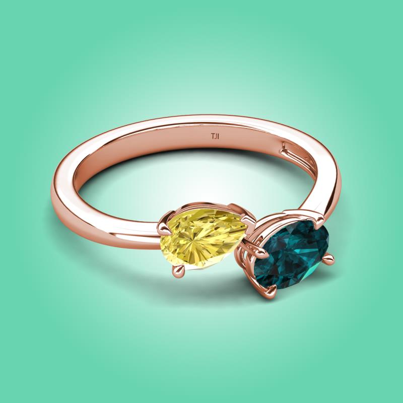 1.90 ctw Yellow Sapphire Pear Shape 7x5 mm & London Blue Topaz Oval Shape 7x5 mm with Prong setting Two Stone Duo Women Engagement Ring in 18K Rose Gold More Details ...