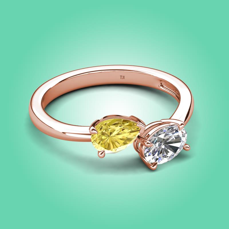 1.75 ctw Yellow Sapphire Pear Shape 7x5 mm & Moissanite Oval Shape 7x5 mm with Prong setting Two Stone Duo Women Engagement Ring in 18K Rose Gold More Details ...