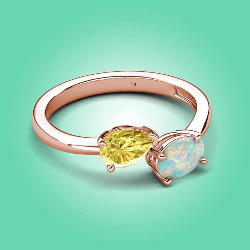 1.40 ctw Yellow Sapphire Pear Shape 7x5 mm & Opal Oval Shape 7x5 mm with Prong setting Two Stone Duo Women Engagement Ring in 18K Rose Gold More Details ...