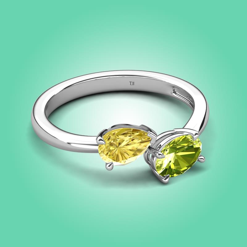 1.80 ctw Yellow Sapphire Pear Shape 7x5 mm & Peridot Oval Shape 7x5 mm with Prong setting Two Stone Duo Women Engagement Ring in 14K White Gold More Details ...