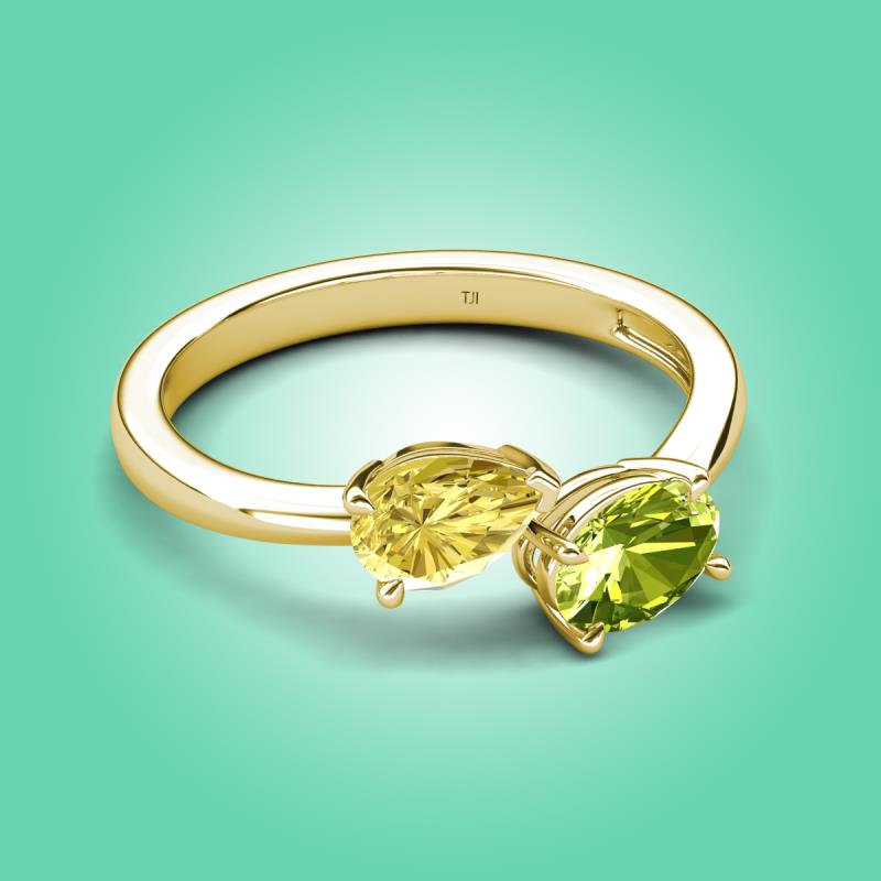 1.80 ctw Yellow Sapphire Pear Shape 7x5 mm & Peridot Oval Shape 7x5 mm with Prong setting Two Stone Duo Women Engagement Ring in 14K Yellow Gold More Details ...