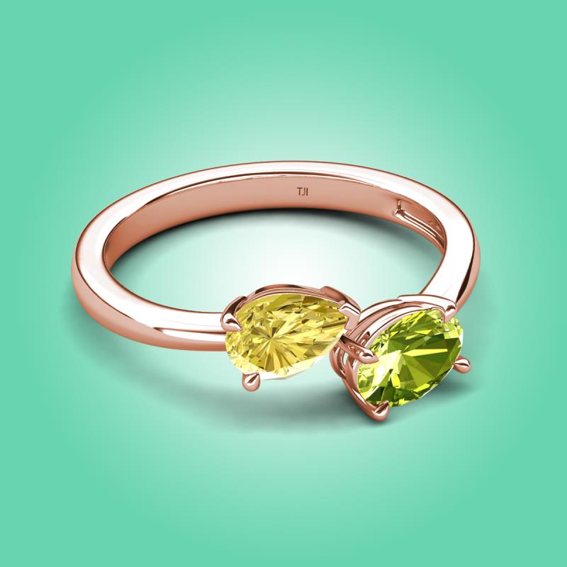 1.80 ctw Yellow Sapphire Pear Shape 7x5 mm & Peridot Oval Shape 7x5 mm with Prong setting Two Stone Duo Women Engagement Ring in 18K Rose Gold More Details ...