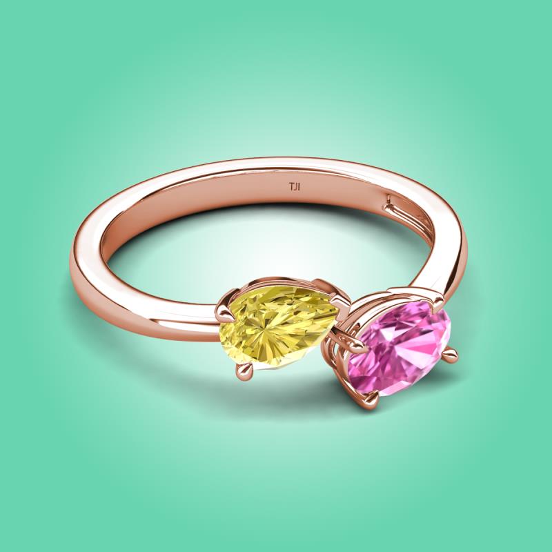 1.90 ctw Yellow Sapphire Pear Shape 7x5 mm & Pink Sapphire Oval Shape 7x5 mm with Prong setting Two Stone Duo Women Engagement Ring in 14K Rose Gold More Details ...