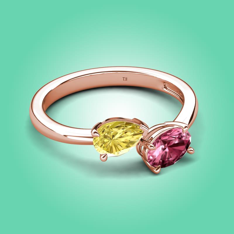 1.75 ctw Yellow Sapphire Pear Shape 7x5 mm & Pink Tourmaline Oval Shape 7x5 mm with Prong setting Two Stone Duo Women Engagement Ring in 14K Rose Gold More Details ...
