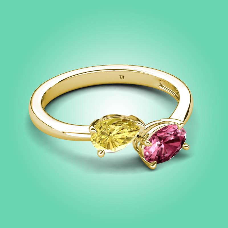 1.75 ctw Yellow Sapphire Pear Shape 7x5 mm & Pink Tourmaline Oval Shape 7x5 mm with Prong setting Two Stone Duo Women Engagement Ring in 18K Yellow Gold More Details ...