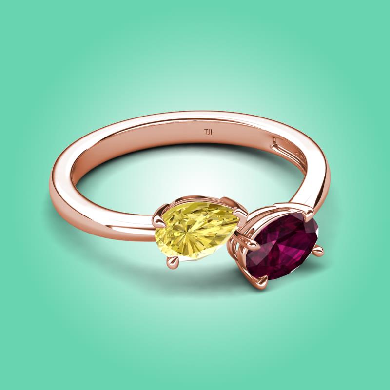 1.90 ctw Yellow Sapphire Pear Shape 7x5 mm & Rhodolite Garnet Oval Shape 7x5 mm with Prong setting Two Stone Duo Women Engagement Ring in 18K Rose Gold More Details ...