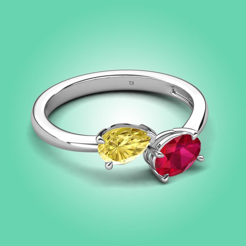 1.80 ctw Yellow Sapphire Pear Shape 7x5 mm & Ruby Oval Shape 7x5 mm with Prong setting Two Stone Duo Women Engagement Ring in 10K White Gold More Details ...
