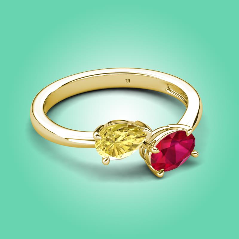 1.80 ctw Yellow Sapphire Pear Shape 7x5 mm & Ruby Oval Shape 7x5 mm with Prong setting Two Stone Duo Women Engagement Ring in 10K Yellow Gold More Details ...