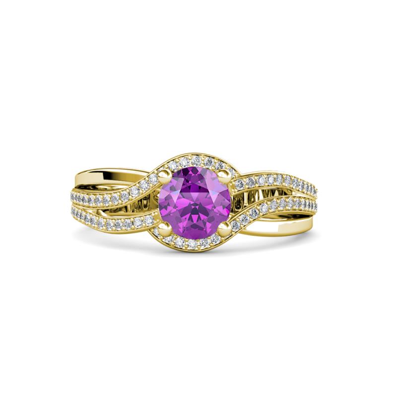 1 1/5 ctw Round Amethyst and Diamond Swirl Womens Halo Engagement Ring 18K Yellow Gold More Details ...