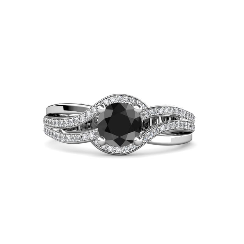 Express your deep love with this gorgeous Engagement Ring with Four Prong set Black Diamond wrapped by pave set Diamonds around the bypass halo continuing with alternating crossover shank making it timeless and elegant.