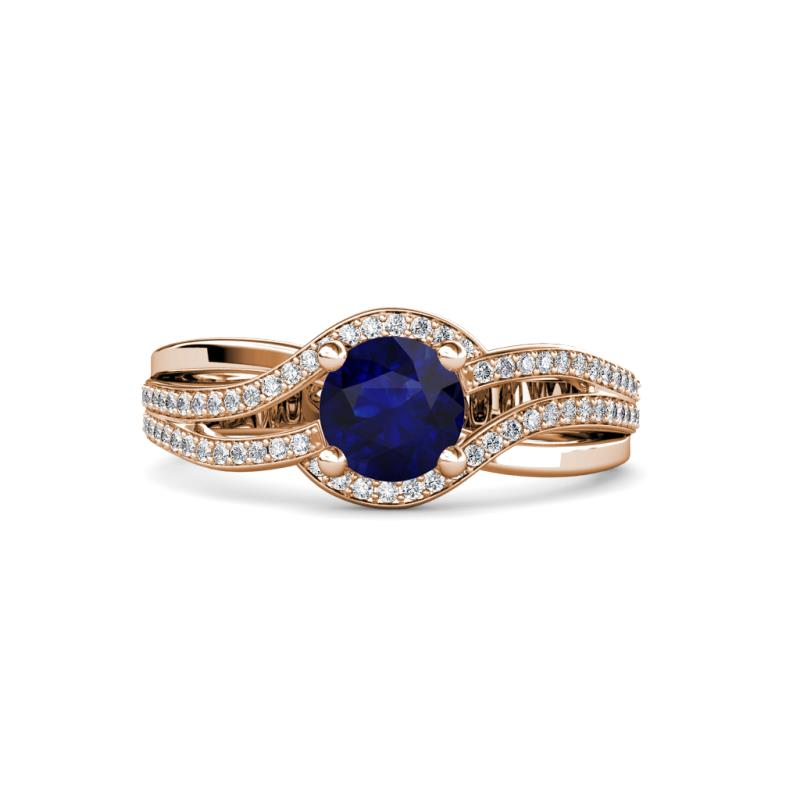 1 1/4 ctw Round Blue Sapphire and Diamond Swirl Womens Halo Engagement Ring 14K Rose Gold More Details ...