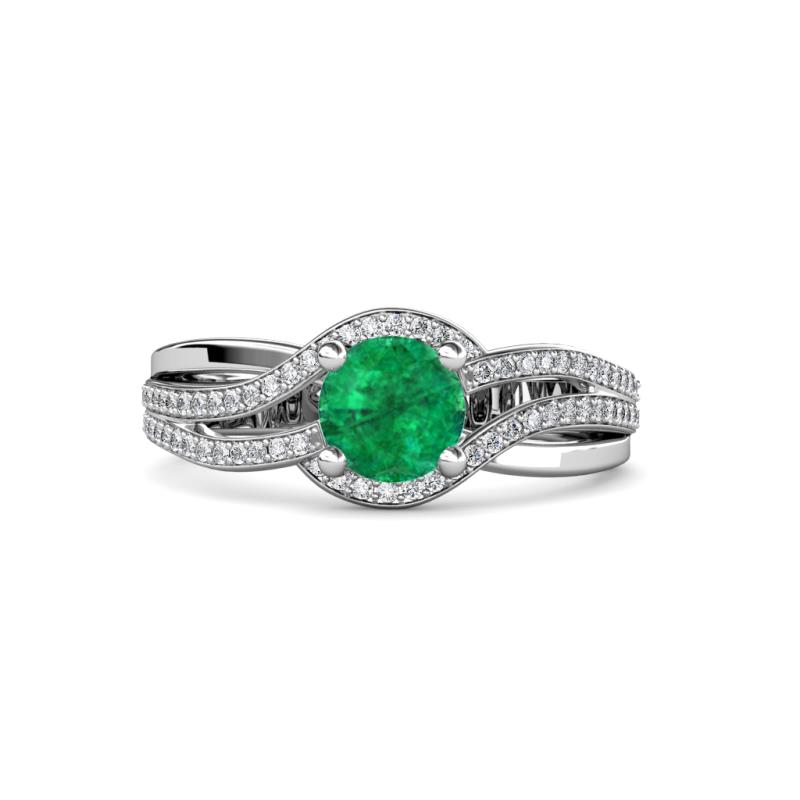 1 ctw Round Emerald and Diamond Swirl Womens Halo Engagement Ring 14K White Gold More Details ...