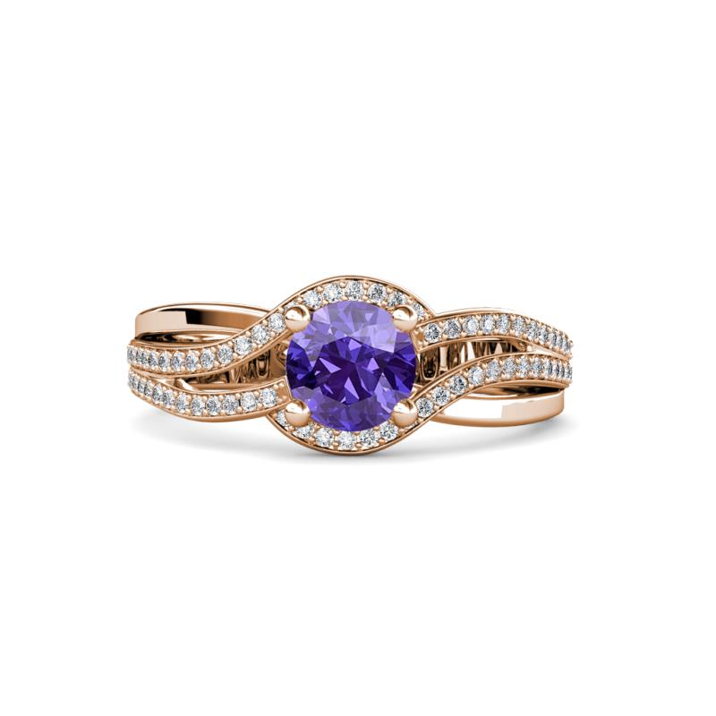 1 1/5 ctw Round Iolite and Diamond Swirl Womens Halo Engagement Ring 14K Rose Gold More Details ...