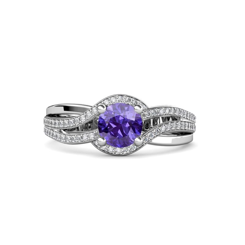 1 1/5 ctw Round Iolite and Diamond Swirl Womens Halo Engagement Ring Platinum More Details ...