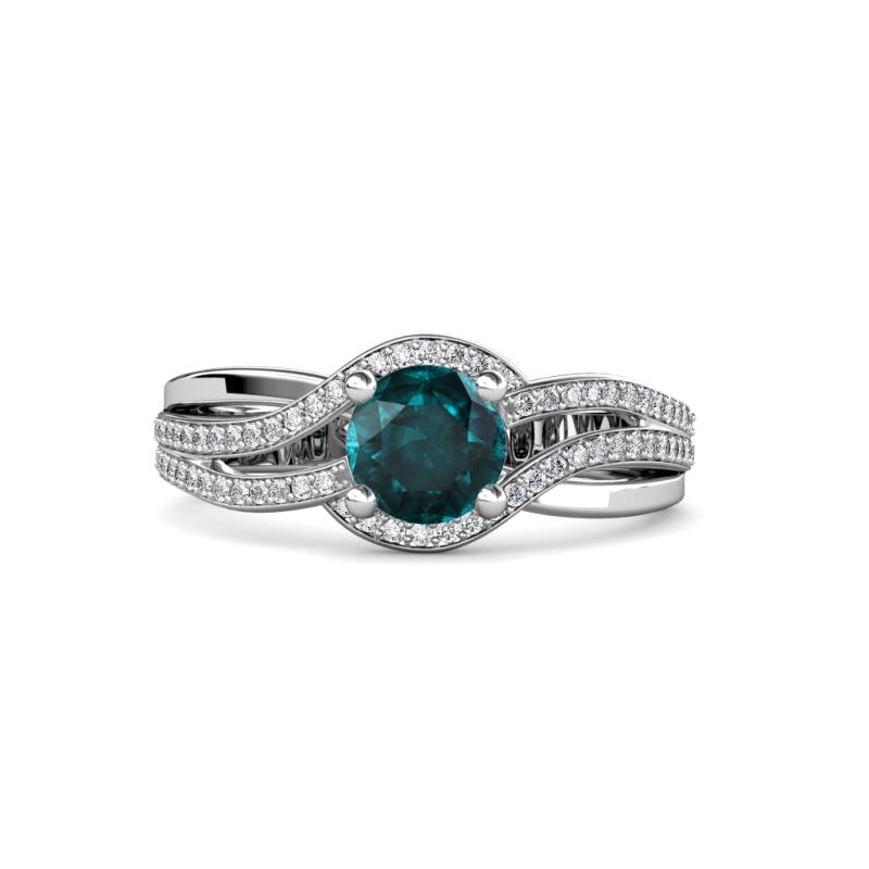 1 1/4 ctw Round London Blue Topaz and Diamond Swirl Womens Halo Engagement Ring 18K White Gold More Details ...