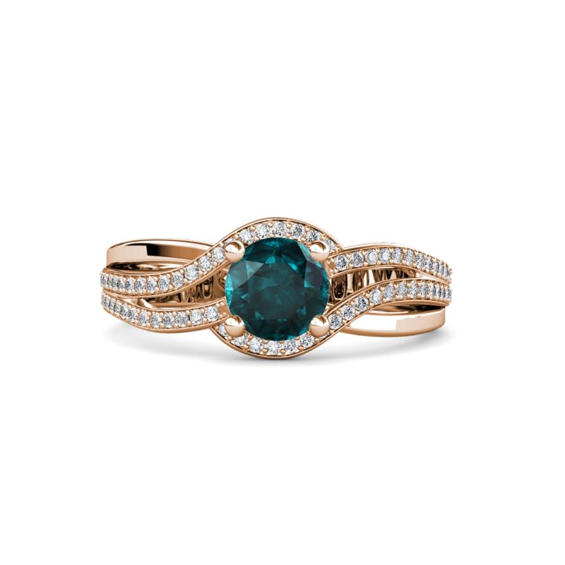 1 1/4 ctw Round London Blue Topaz and Diamond Swirl Womens Halo Engagement Ring 18K Rose Gold More Details ...
