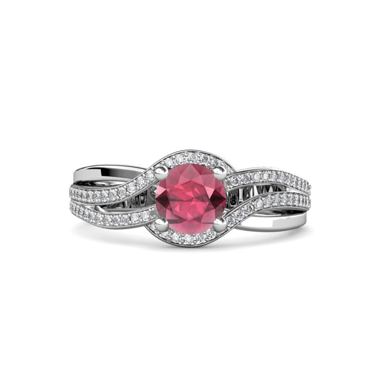 1 1/3 ctw Round Rhodolite Garnet and Diamond Swirl Womens Halo Engagement Ring Platinum More Details ...