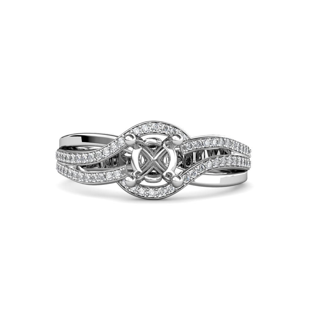 Express your deep love with this gorgeous Semi Mount Engagement Ring wrapped by pave set Diamonds around the bypass halo continuing with alternating crossover shank making it timeless and elegant.