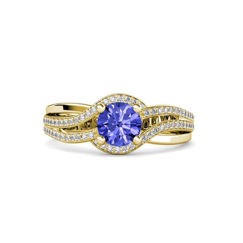 1 1/4 ctw Round Tanzanite and Diamond Swirl Womens Halo Engagement Ring 18K Yellow Gold More Details ...
