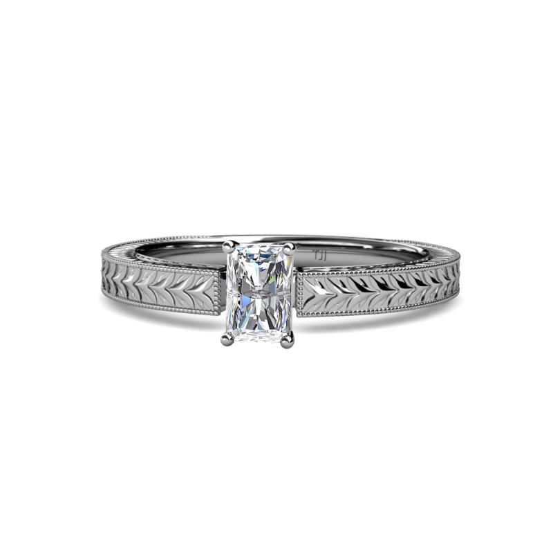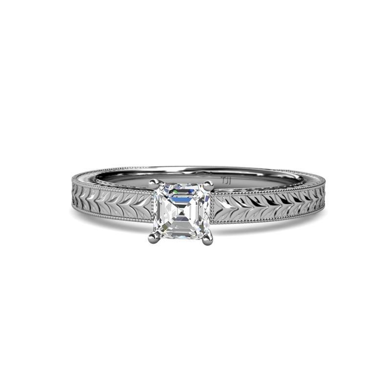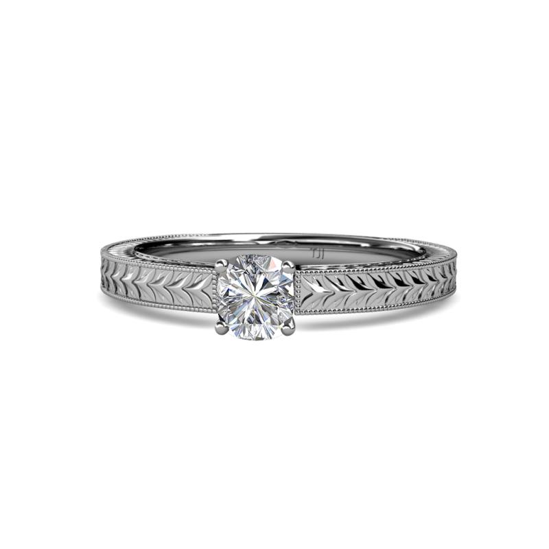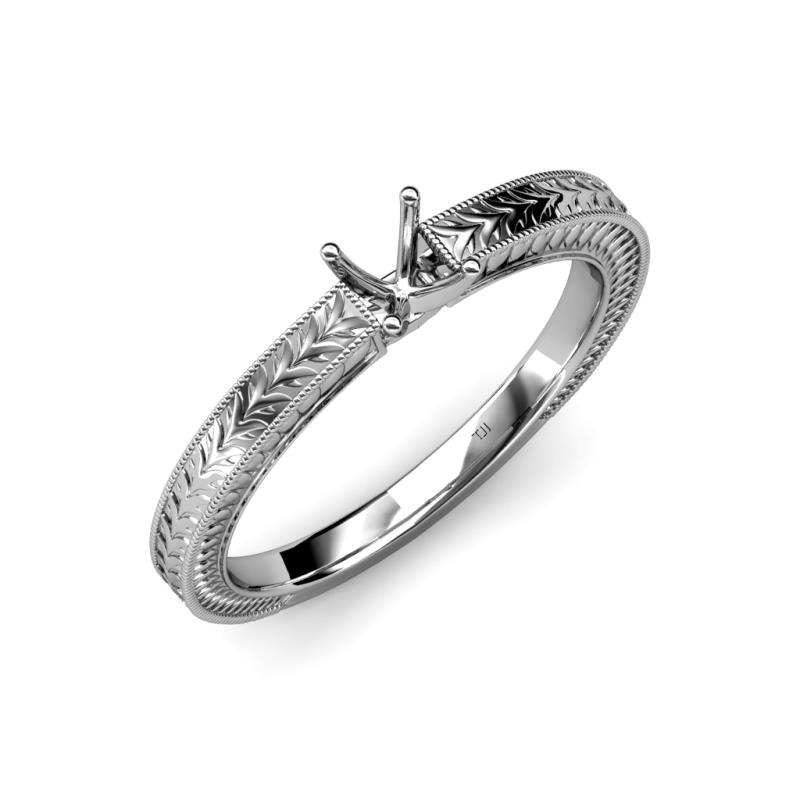 Four Prong Semi Mount Womens Engraved Engagement Ring Setting with Milgrain Work 14K White Gold More Details ...