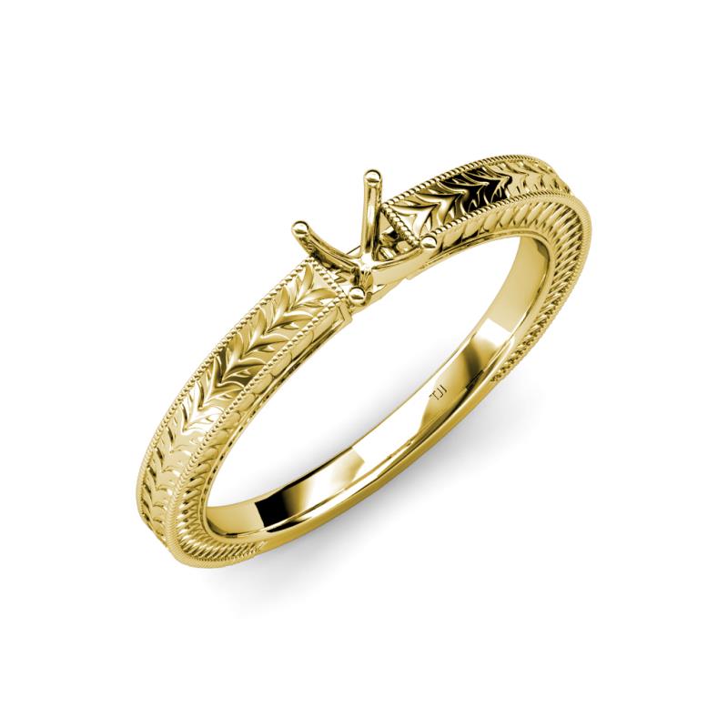 Four Prong Semi Mount Womens Engraved Engagement Ring Setting with Milgrain Work 14K Yellow Gold More Details ...