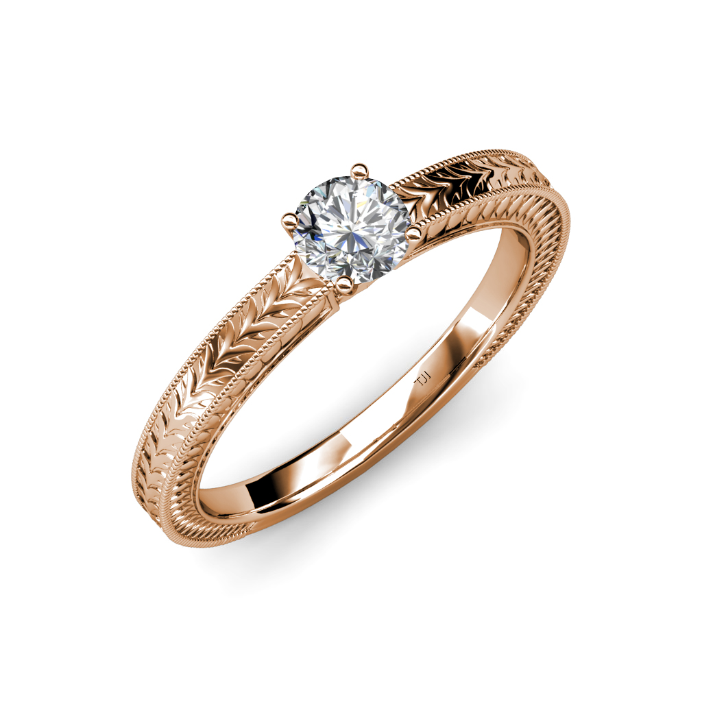 Four Prong Semi Mount Womens Engraved Engagement Ring Setting with Milgrain Work 14K Rose Gold More Details ...