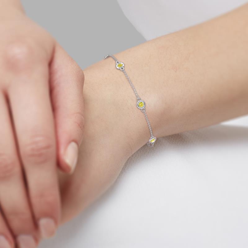 (5 Stn/4 mm) Yellow Diamond 1.25 ctw Bezel set Women Station Bracelet in 14K White Gold More Details ...