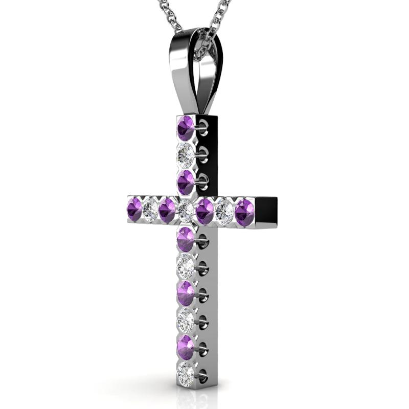Amethyst and Diamond Womens Cross Pendant Necklace 0.88 ctw 14K White Gold. Included 18 inches 14K White Gold Chain More Details ...