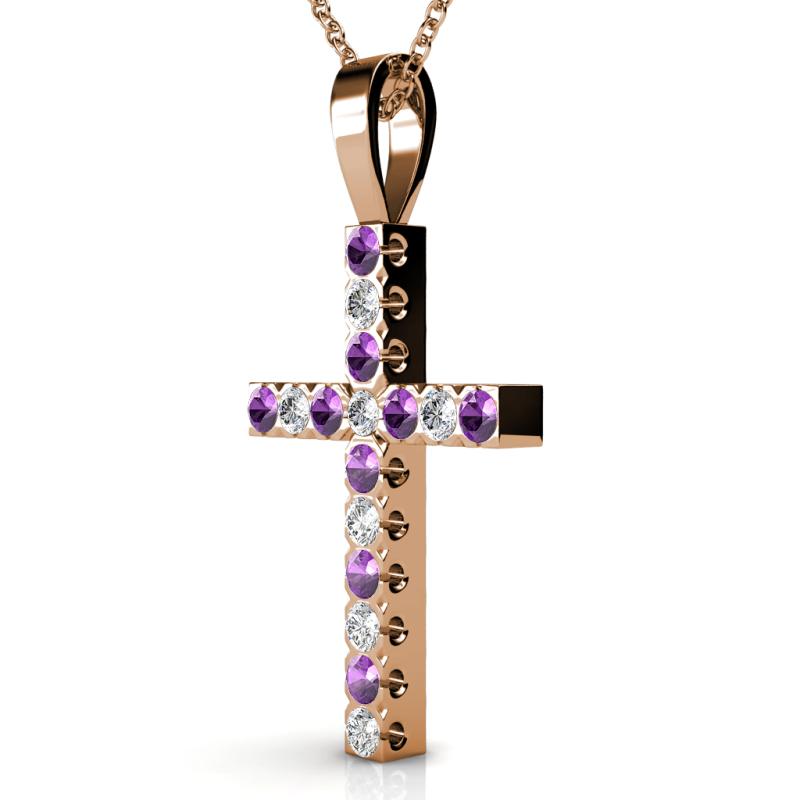 Amethyst and Diamond Womens Cross Pendant Necklace 0.88 ctw 14K Rose Gold. Included 18 inches 14K Rose Gold Chain More Details ...