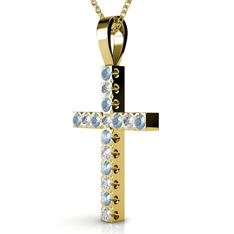 Aquamarine and Diamond Womens Cross Pendant Necklace 0.88 ctw 14K Yellow Gold. Included 18 inches 14K Yellow Gold Chain More Details ...