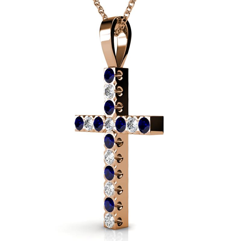 Blue Sapphire and Diamond Womens Cross Pendant Necklace 0.88 ctw 14K Rose Gold. Included 18 inches 14K Rose Gold Chain More Details ...