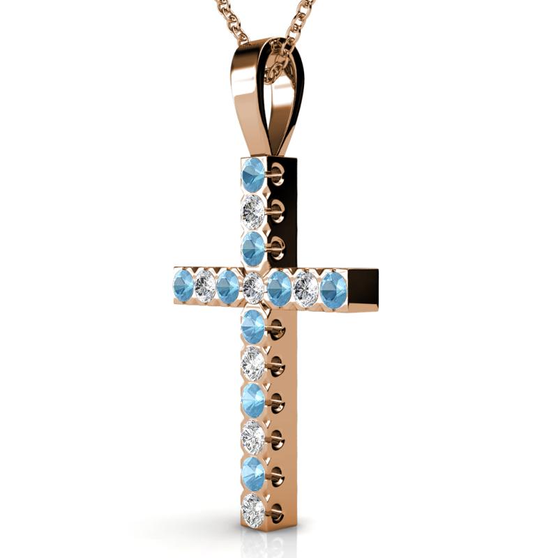 Blue Topaz and Diamond Womens Cross Pendant Necklace 0.88 ctw 14K Rose Gold. Included 18 inches 14K Rose Gold Chain More Details ...