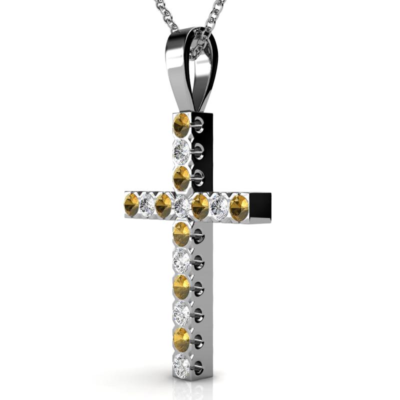 This is a Sparkling 0.88 ct tw Cross Pendant on which Citrine and Diamond are mounted by using Pave Setting, which shows one's Religious Devotion.