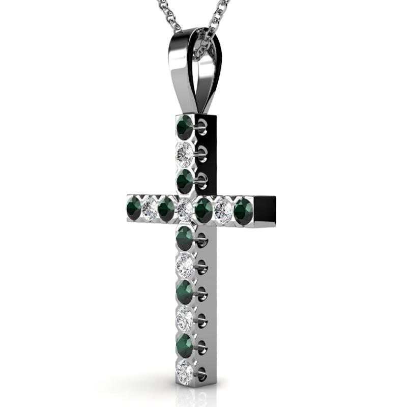 Emerald and Diamond Womens Cross Pendant Necklace 0.80 ctw 14K White Gold. Included 18 inches 14K White Gold Chain More Details ...