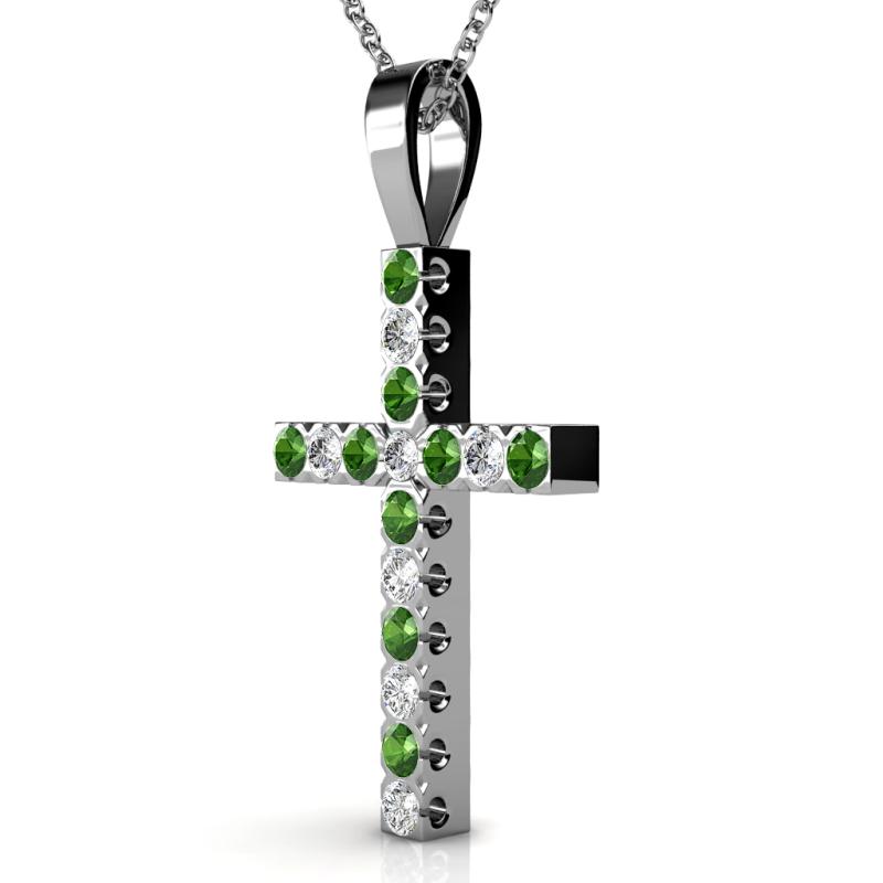 Green Garnet and Diamond Womens Cross Pendant Necklace 0.88 ctw 14K White Gold. Included 18 inches 14K White Gold Chain More Details ...