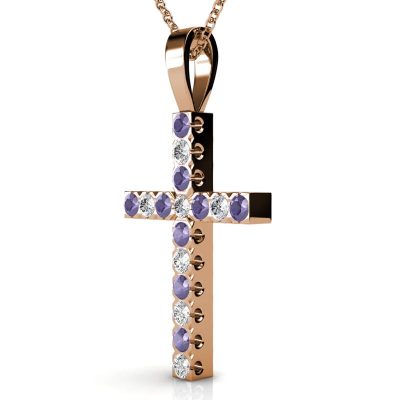 Iolite and Diamond Womens Cross Pendant Necklace 0.88 ctw 14K Rose Gold. Included 18 inches 14K Rose Gold Chain More Details ...