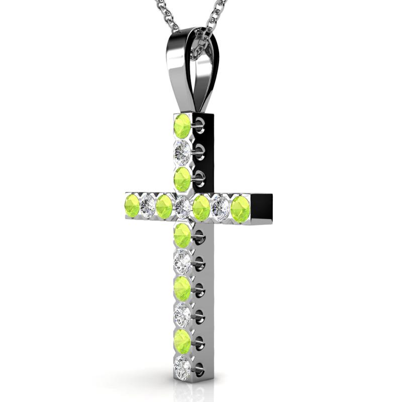 Peridot and Diamond Womens Cross Pendant Necklace 0.88 ctw 14K White Gold. Included 18 inches 14K White Gold Chain More Details ...