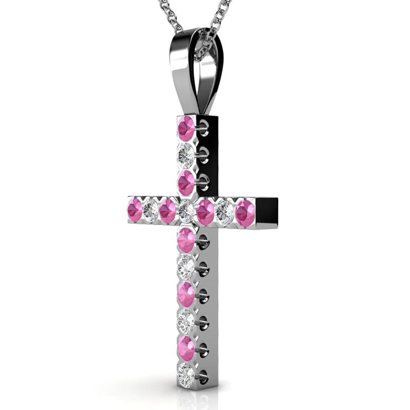 Pink Sapphire and Diamond Womens Cross Pendant Necklace 0.88 ctw 14K White Gold. Included 18 inches 14K White Gold Chain More Details ...